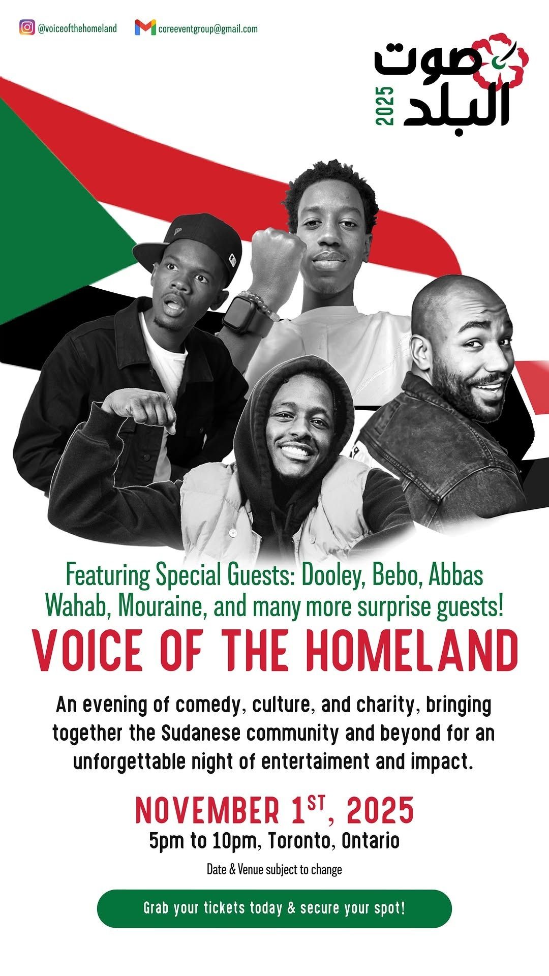 Join the Sudanese community for a joyful evening of comedy, culture, and charity! Experience traditional performances, guest appearances, Sudanese comedians, and vendors, all coming together to celebrate heritage while supporting urgent humanitarian efforts.